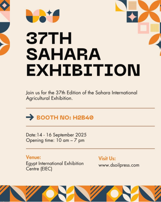 鄭州鼎盛機械有限公司,將于2025年9月14至16日在埃及國際展覽中心,第37屆撒哈拉國際農業展覽會參展,和各國友人交流分享榨油機各種知識。